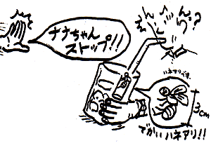 <ポイント> 聞いた所によるとマレーシア人は大変純情で、保守的らしい。 その中でナナチャンは大変積極的に日本人と接し(ガイドだから当たり前か…)楽しませるための 様々なサービスを提供してくれるので、マレーシア人の中ではかなりハイカラな部類だと思う。 そのハイカラのナナチャンは、マレーシア人の血であろうか、よくビビっている状況に出くわす。 またそれも愛敬があっていいのだが…。 ↓下の写真は、飼い猫(しかもかわいい子猫)に腕を軽くかじられて、ビビリまくっているナナチャン。