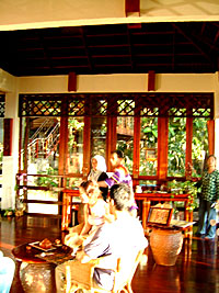内部に入ると待合室がある。そこは前面板張り、高い天井、崖の上という立地なので、開き窓から海が一望できて大変リラックスできる空間です。 私(男)はエステ初体験。少々ドキドキしている。 このエステは、日本人の女性経営者が運営。とてもシャキシャキっていうか・・大阪のお姉さんみたいな・・・とにかく気兼ねなく話せる感じの女性です。 (彼女もランカウイ島の旅行者で、ランカウイ島が好きになりエステを始めたらしいです。)