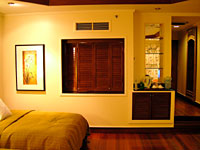 部屋はなかなか広くて落ち着いた感じでGOOD。バルコニーもでかい。面白いのはバスルームに窓がついていて開くとベットルームと