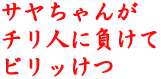チリ人の女の子に負けてビリになってった。サヤちゃんを思い浮かべてください。