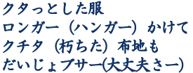 kuta(クタッ)=きつい / longgar(ロンガー)=ゆったり