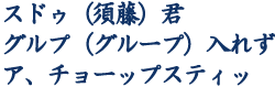 スドゥ=スプーン/グルプ=フォーク/チップスティッ=お箸