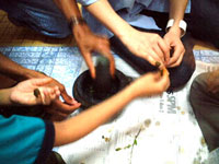 ●イナイで… さあ、子供達が新聞を敷いて何かを始めました! |