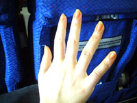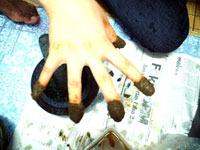 ●イナイで… ちょっとわかりにくいけど、不思議!指先がオレンジ色になってしまった。どうやら新婚サンが塗ったり、化粧でもあるらしい。 |