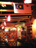 映っている。ちょっと薄暗い店内でマレーシアの雰囲気を出しています。そして控えめな音楽と座り心地が良い椅子などお客さんに配慮された店内。