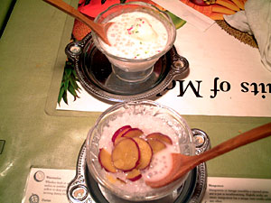 来たものがちょっとメニューの説明写真と違う…。食べて見るとタダの蒸したサトイモの輪切り(皮付き)がタピオカの上に乗っているだけっ!!
