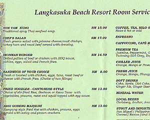 <ポイント> アンダマン等の高級リゾートと比べて、ラサリアリゾートのルームサービスは約半額程度。 安さに感動しサンドイッチを頼んだのですが、正直あんまりおいしくなかった。 ルームサービスとは話がそれますが、我々の感じたラサリアリゾートの食事は全体的にあまりおいしくありませんでした。 朝のビュッフェはあまり種類がなく、毎日同じ。ドリンクもオレンジジュースと、ミルク、ティー、コーヒーと言った感じ。 ラサリアリゾート大スキの方ごめんなさい。