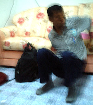 <ポイント> 聞いた所によるとマレーシア人は大変純情で、保守的らしい。 その中でナナチャンは大変積極的に日本人と接し(ガイドだから当たり前か…)楽しませるための 様々なサービスを提供してくれるので、マレーシア人の中ではかなりハイカラな部類だと思う。 そのハイカラのナナチャンは、マレーシア人の血であろうか、よくビビっている状況に出くわす。 またそれも愛敬があっていいのだが…。 ↓下の写真は、飼い猫(しかもかわいい子猫)に腕を軽くかじられて、ビビリまくっているナナチャン。