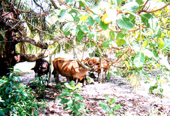 見渡す限り深い緑に囲まれて、広々とした草原や畑には水牛が思い思いに草を食べています。