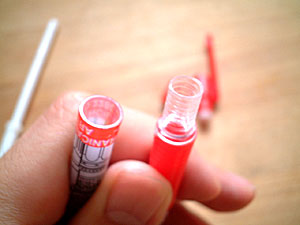 次は芯ケースです。日本のケースと違って、フタがキャップになっている。芯は2Bの20本入っているらしい。