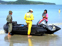 「↓ダタイベイの手前の地元の海水浴場・・・Pasir Tengkorak Beach にて。珍しい人々・・・軍人さんかなぁ・・・ がいましたのでこっそり撮影。何をしていたかは不明ですが。。。(Mieさん)」 うーむ。たしかに怪しい。
