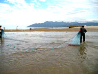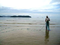 「↓ランカウイはいつもと変わらなかったのですが、10回以上訪れた私でも経験したことのない大潮でした。 ペランギの前はプライベートビーチだと思い込んでいたのですが、朝、漁師さんがいたりして・・・ 撮影した日はたまたま不漁で現地の人が食べないハコフグみたなのが引っかかっていました。((Mieさん)」 へ〜漁師さんなんてビーチで投網なんてしてるんですねぇ。それにしても10回以上ですか・・すごい。