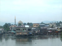 『コタ・キナバルの町は海岸線に沿って細長く発展 しており、その中心街は東よりに位置するほんの2 km四方のエリア。