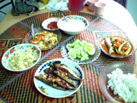 ●昼食 我々も昼食をいっしょにとらせて頂くことに。色々写真を撮っていると「はずかしいからやめて!」と言われてしまった。 |