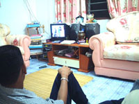 ●2003年ランカウイ島(9/4) 到着当日ナナ宅に訪問。新居には始めて。 奥様はペナンに帰っているとの事。玄関から直接居間に入る間取。 |